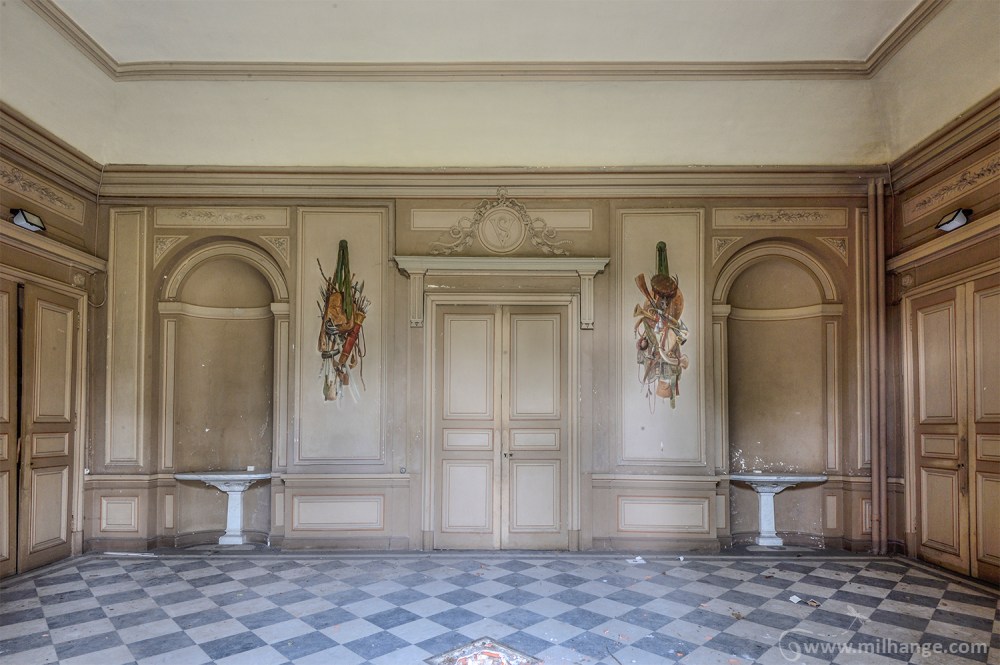 Ce grand bâtiment sans âme, ouvert aux quatre vents et très abîmé ne laisse en aucun cas présager des merveilles qu’il renferme. Laissé à l’abandon depuis des années, il souffre des allées et venues de visiteurs indélicats. Dévasté et brisé malheureusement, il subsiste cependant de magnifiques peintures aux murs et aux plafonds ainsi que des tapisseries insolites qui racontent des histoires fabuleuses notamment les fables de La Fontaine : on y croise le corbeau, le renard, le loup, l’agneau, la cigogne, le lièvre, la tortue sans oublier Perrette et son pot au lait cassé… Adieu veaux, vaches, cochons, couvées… Adieu château des fables… il n’est pas certain que tu sois sauvé. Désormais, le tapis rouge pleure la disparition de la majesté des lieux.